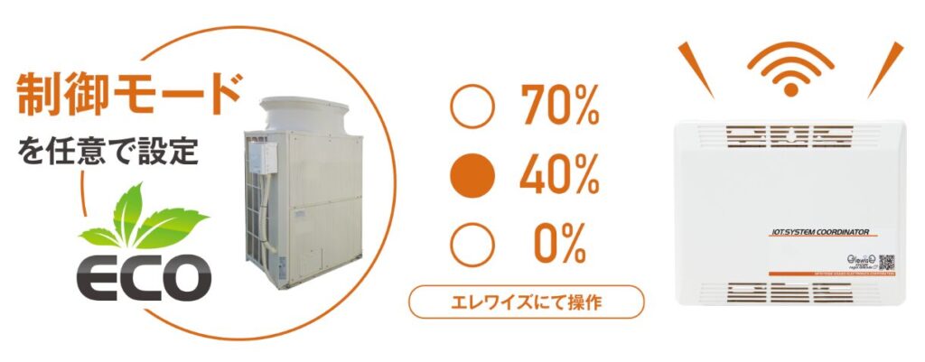 エレワイズはデマンド値を下げて電気料金を削減するシステムとして注目されており、無線で室外機を制御するため、設置費用を抑え、短い工期で導入できるという強みがあります。
